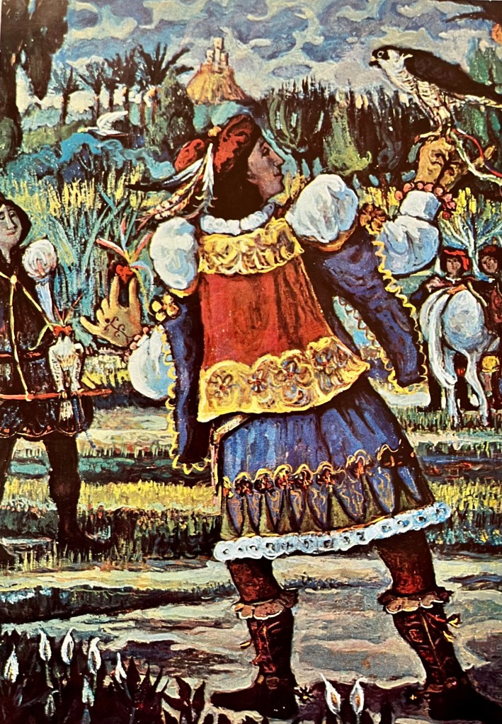 Pina Nortes recrea una escena cortesana palpitante de vida, en la que el infante aparece ataviado con ricos ropajes y sosteniendo un halcón de cetrería —símbolo de nobleza y alusión directa a su «Libro de la Caça» — el infante encarna aquí tanto su autoridad política como su relevancia literaria, reforzada por su célebre «El Conde Lucanor».