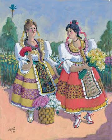 Ángel Pina Nortes recoge la tradición de la pintura costumbrista que desde tiempo de los Brueghel ha sido representada, con mayor o menor acierto. Un género que muestra las fiestas populares con los lugareños (Bando de la Huerta, Semana Santa), los personajes anónimos como protagonistas en el disfrute de sus tradiciones, de sus fiestas, de sus costumbres y sobre todo de su tierra, Murcia.