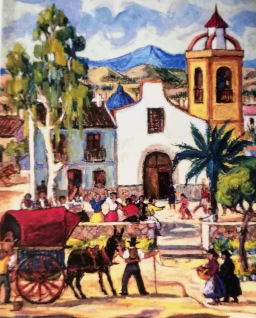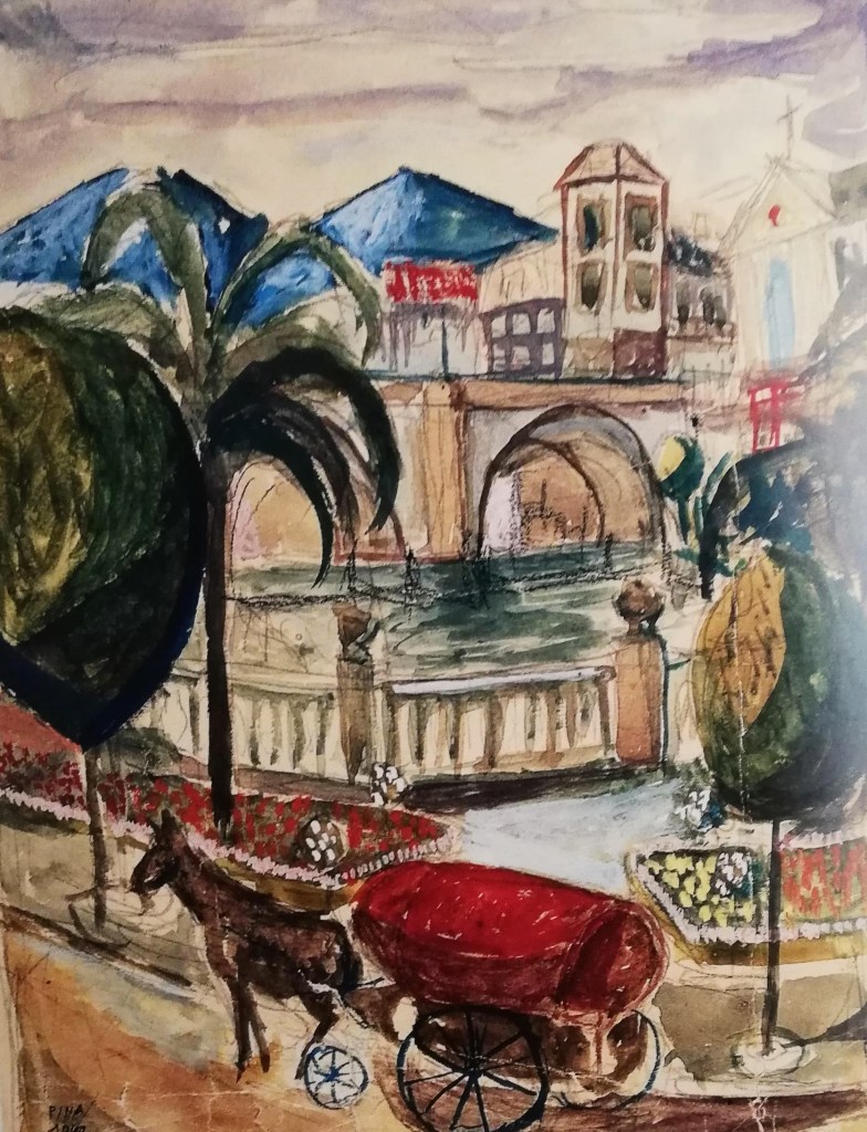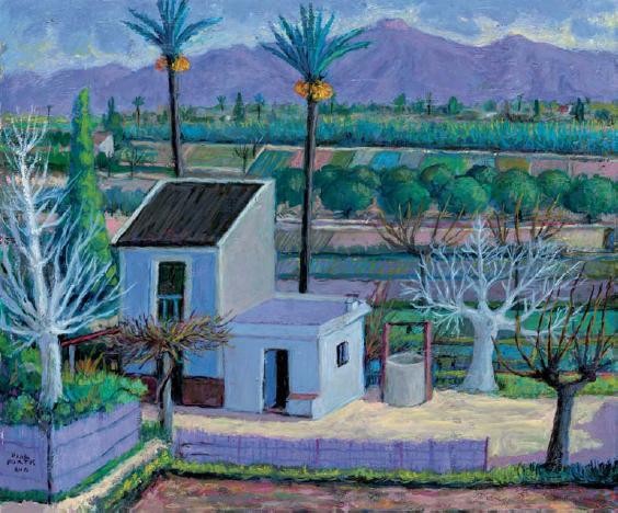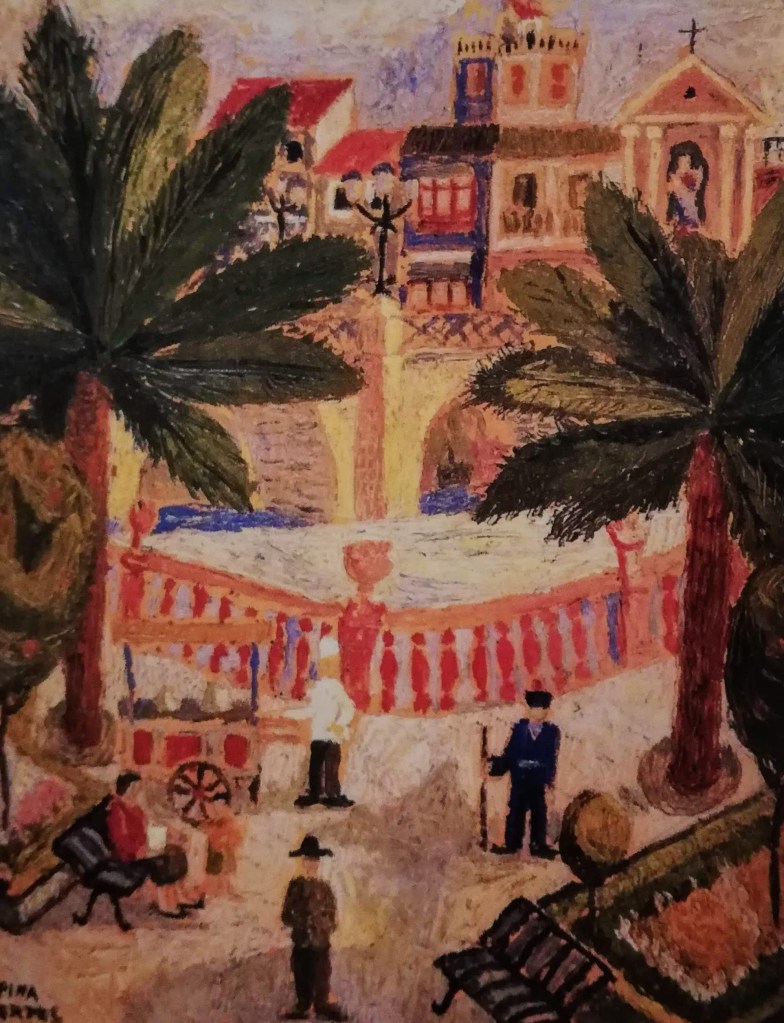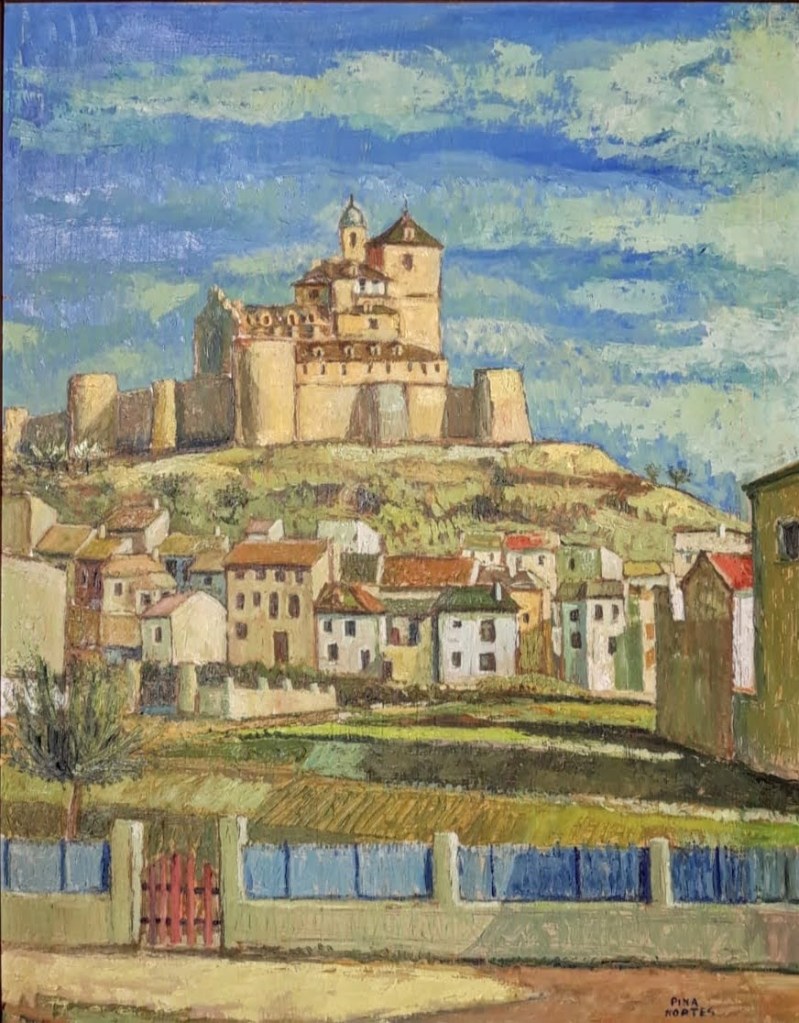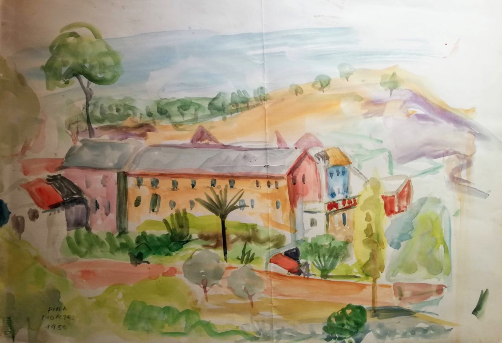 A través de su paleta de colores vivos y su técnica meticulosa, Pina Nortes recrea la esencia y la riqueza visual de la huerta murciana y logra transmitir la belleza única de la Región de Murcia, reflejando los paisajes huertanos y la vida cotidiana de la gente de la Región de Murcia.