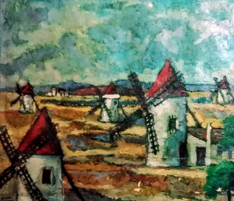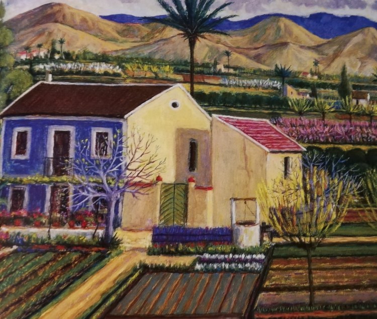 “la tierra y el mar me brinda estos paisajes. Murcia, región soleada y luminosa, nos regala un rico abanico cromático. Y quizá por ello, mi afán en transmitir colores vivos, optimistas, armonizados, pero siempre en equilibrio con la temática de cada cuadro”