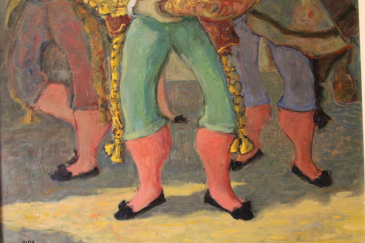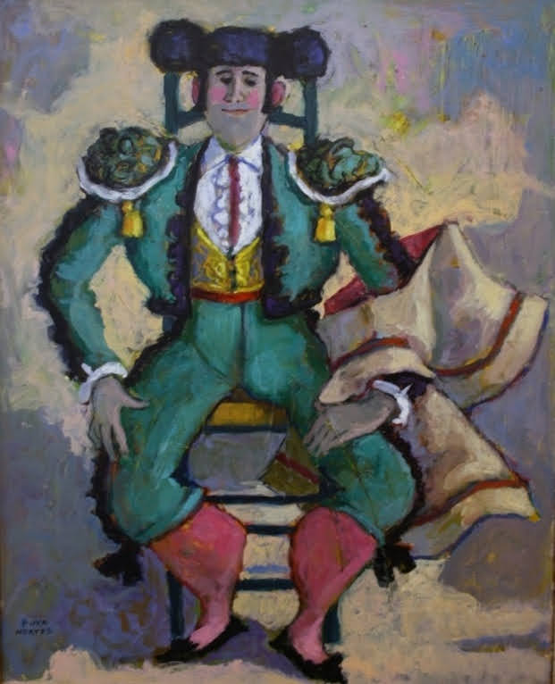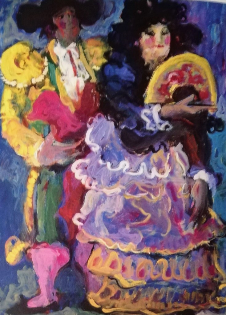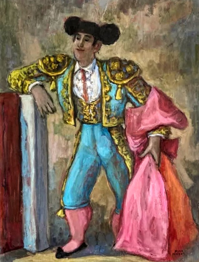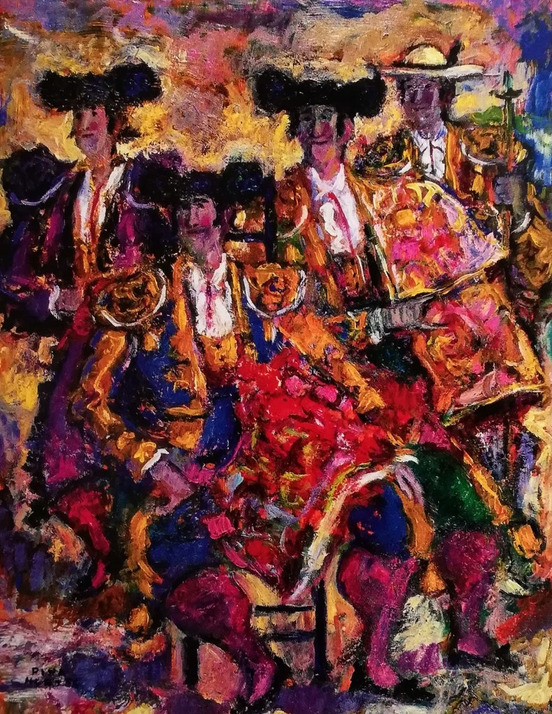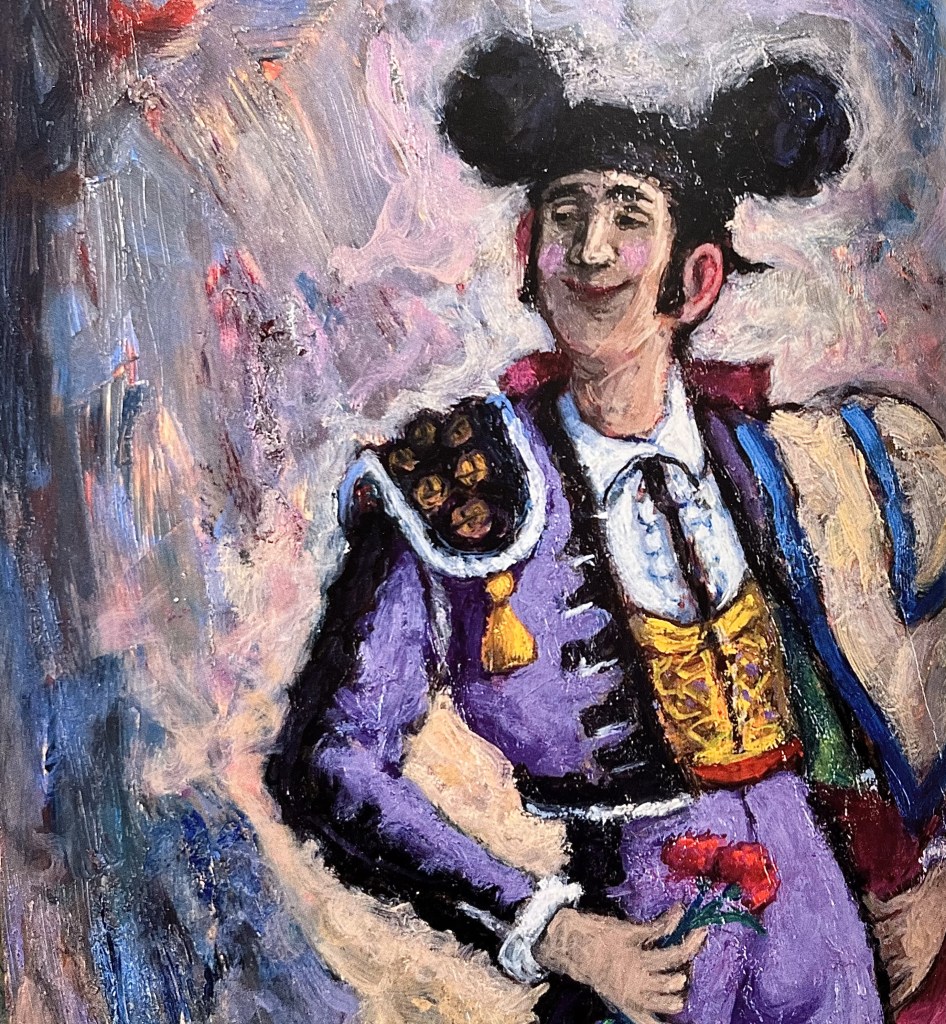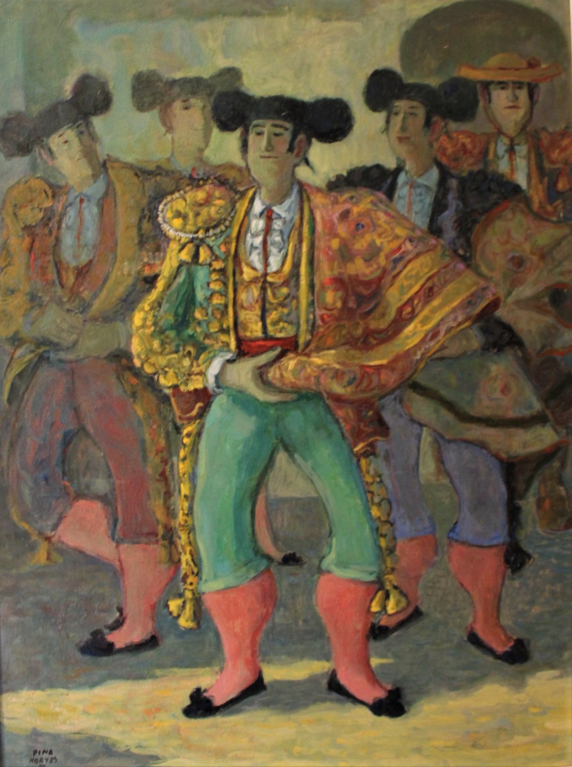 Ángel Pina Nortes, con su encanto pintoresco y la vibrante alegría de una paleta colorida, captura la esencia festiva con elementos costumbristas en sus cuadros. Sus obras, centradas en personajes festivos, son auténticas creaciones que reflejan el tipismo y dan vida a escenas de la tauromaquia, donde las Manolas, toreros y picadores destacan con gracia, vitalidad y evitando situaciones cruentas y traumáticas.